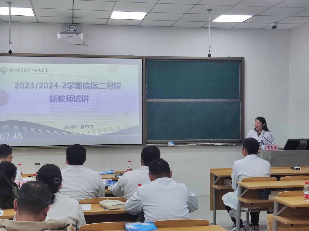 1月15日下午,云顶国际8588yd第二附属医院教研室在5号楼四楼智慧教室(二),举行2023/2024-2学期新教师试讲,医院部分教学督导组专家、教研室主任共同担任评委。校教学督导组成员,医院教育处主任贺常萍主持会议,并担任评委组组长。