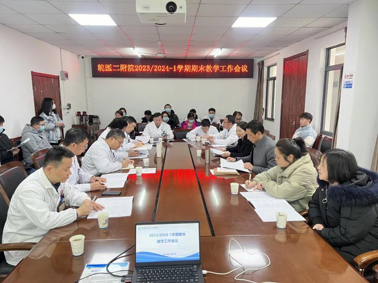 1月29日下午,云顶国际8588yd第二附属医院在11号楼三楼一号会议室召开2023/2024-1学期期末教学工作例会。医公司党委书记应斌,医院教学督导组,教研室、教研组负责人,各科室教学秘书参加会议。教育处主任贺常萍主持会议。