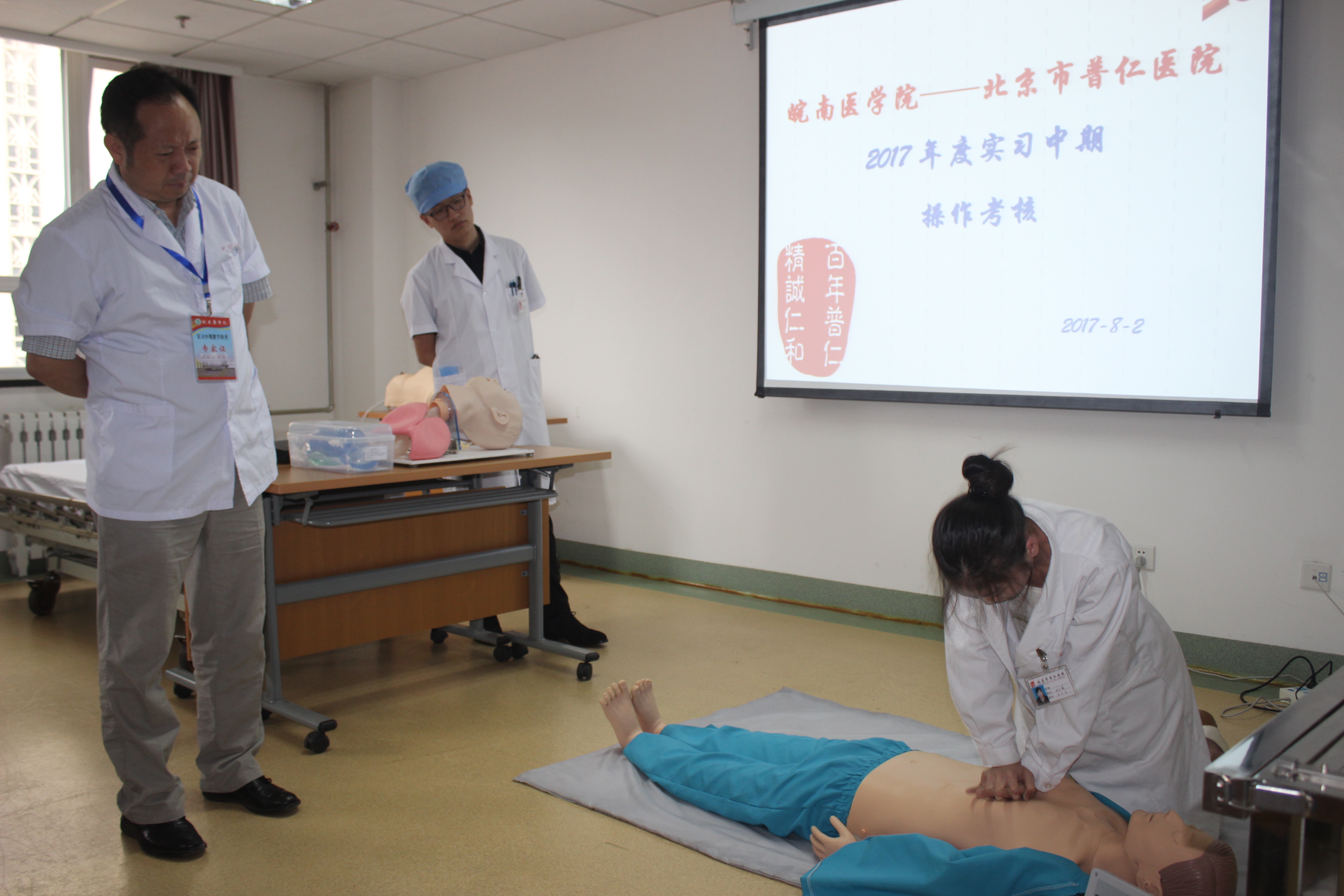 本次检查工作分为两个阶段,7月25日至7月28日,由崔晓霞带队,第一附属医院临床教师李倩、刘策刚、孙青、顾勇等4人组成专家组,先后来到滁州市第一人民医院、太和县人民医院2所实习 (教学)医院开展工作;8月1日至8月4日,由戴睿带队,第一附属医院临床教师李倩、刘策刚、孙青、胡芳等4人组成专家组前往北京市普仁医院、北京市丰台区南苑医院,检查组一行受到了各家医院领导和科教科、医务处等部门的热烈欢迎。