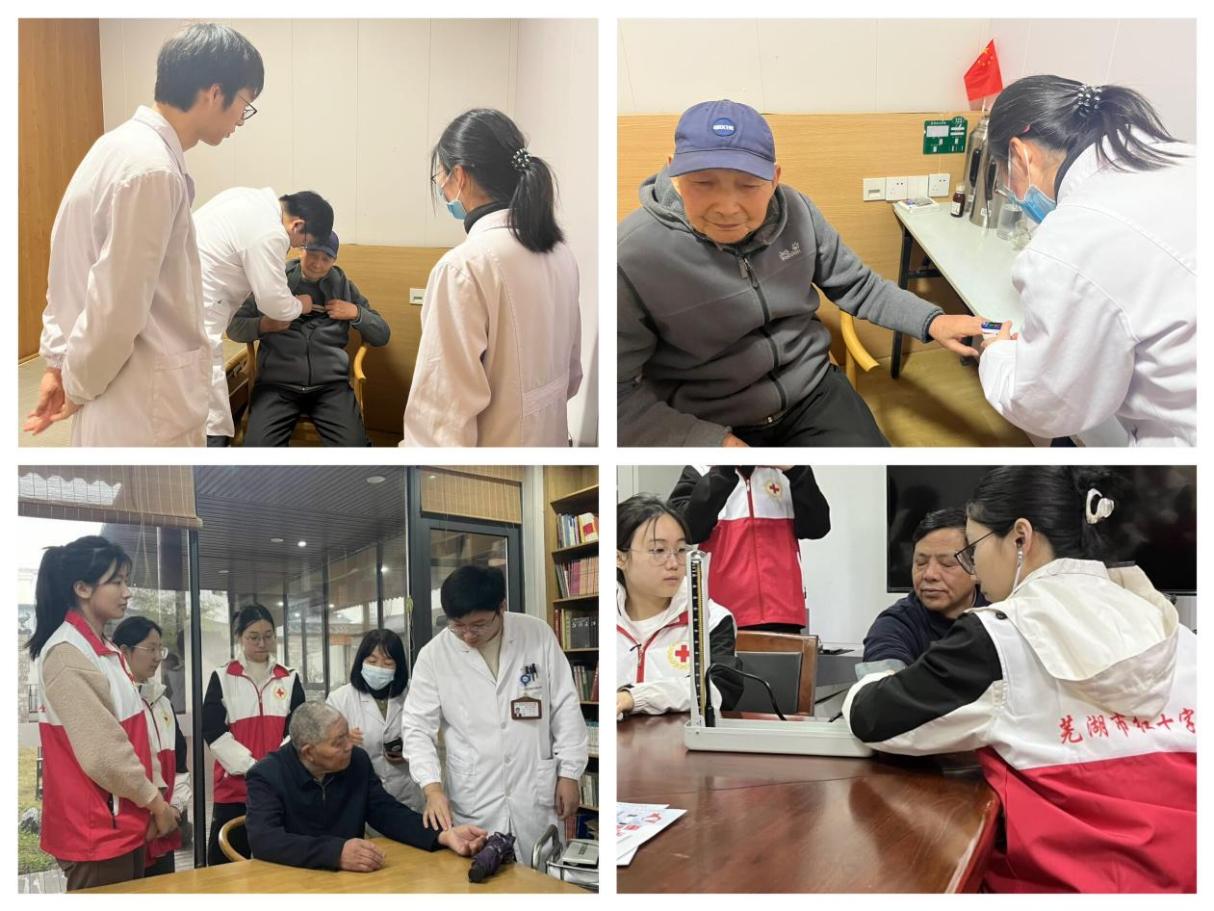 义诊进社区,居民齐欢颜。为方便居民就近就医,志愿者们跟随弋矶山医院专家来到碧桂园社区党群服务中心,为社区居民免费开展义诊咨询服务。大家协助医护人员为居民开展体格检查、询问病情病史等,并在医生的指导下开展常见病健康指导,引导居民养成科员工活方式,预防疾病的发生。同学们和医务人员认真细致的态度,赢得了群众的高度评价。