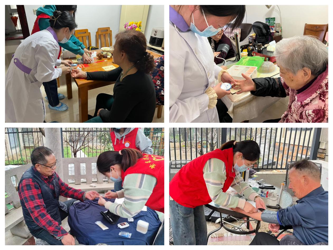 送医入家门,健康零距离。为方便社区独居老人及退休老党员享受到暖心服务,由医护志愿者和员工志愿者组成的爱心服务小组前往居民家中开展义诊。大家为老人测量血压、血糖,帮助老人全面了解自己身体情况,指导老人养成良好生活习惯,叮嘱老人应注意的保健事项等。医护人员和志愿者们的真心服务和关心问候让老人们深受感动。