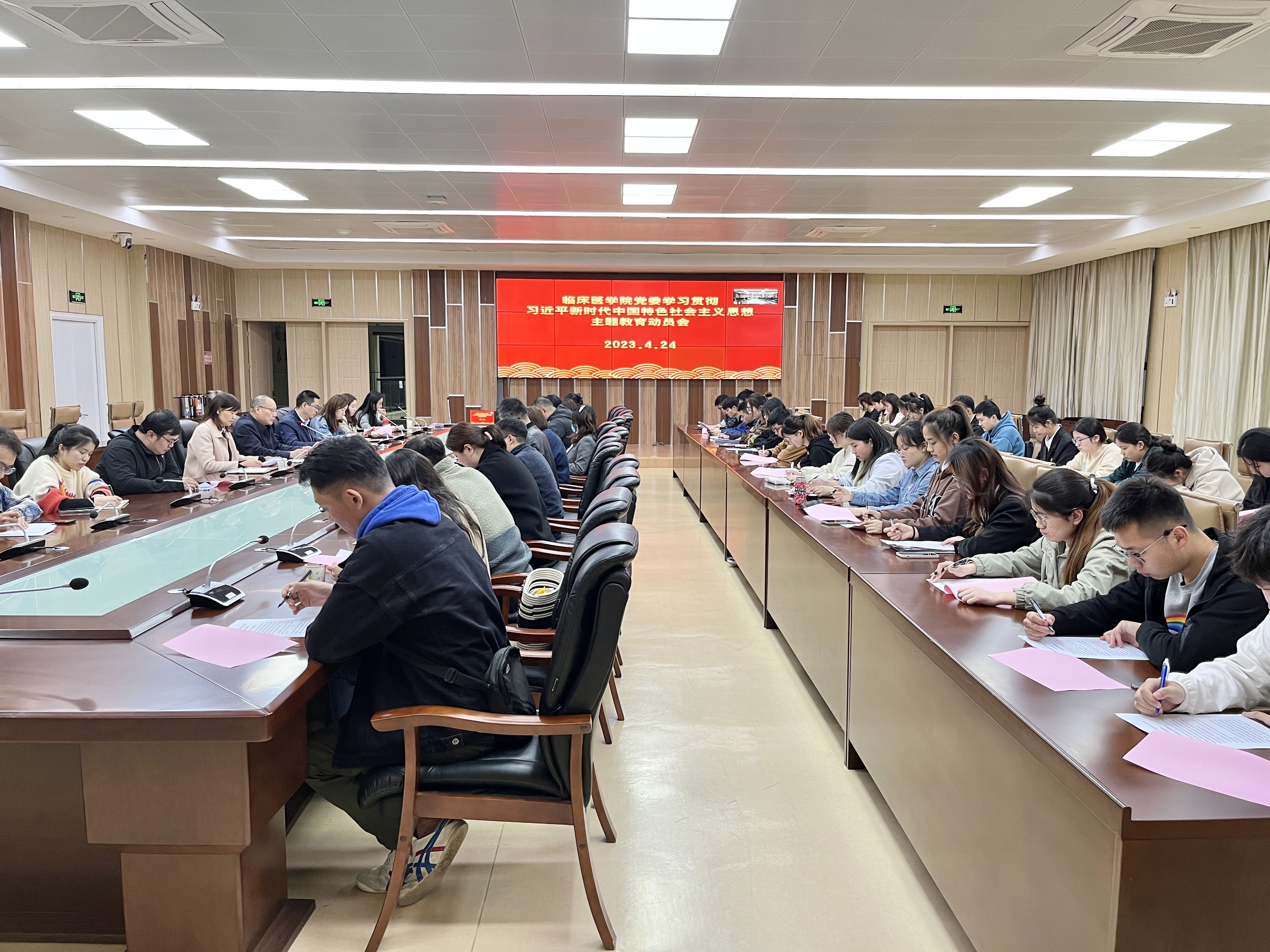4月24日下午,云顶国际8588yd于4号实验楼二楼会议室召开学习贯彻习近平新时代中国特色社会主义思想主题教育动员会,于赭麓校区5教2013会议室设置分会场,校外实习生党员线上参会。会议由公司党委书记傅万山主持,全体师生党员参加会议。
