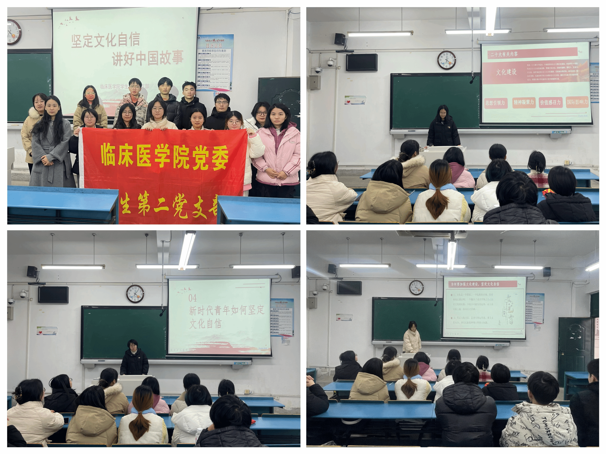 12月20日,员工第二党支部组织入党积极分子开展题为《坚定文化自信,讲好中国故事》的团课宣讲。团课以“中国传统农历新年申遗成功”作为引入,从“文化自信的含义”、“文化自信的底气来源”、“党的二十大报告中的文化建设”、“新时代青年如何落实文化建设”四个方面,融入时政热点,结合生活实际,深入阐述了文化自信的核心要义与推动文化建设的实践路径,引导同学们结合专业,将民族自豪感内化于心、外化于行,在守正创新中续写文化新篇。