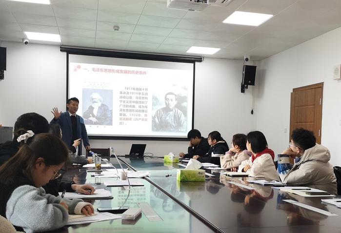 支部书记王平从毛泽东思想的形成与发展、主要内容、活的灵魂和历史地位四个方面进行了讲解,他强调毛泽东思想博大精深,是马克思主义中国化的第一次历史性飞跃,其主要内容是新民主主义革命,社会主义革命和社会主义建设,革命军队的建设和军事战略,政策和策略,思想政治工作和文化工作,以及党的建设等六个方面。毛泽东思想活的灵魂是是实事求是、群众路线、独立自主,这三个方面既是世界观,又是方法论,既是政治智慧,又是领导艺术。