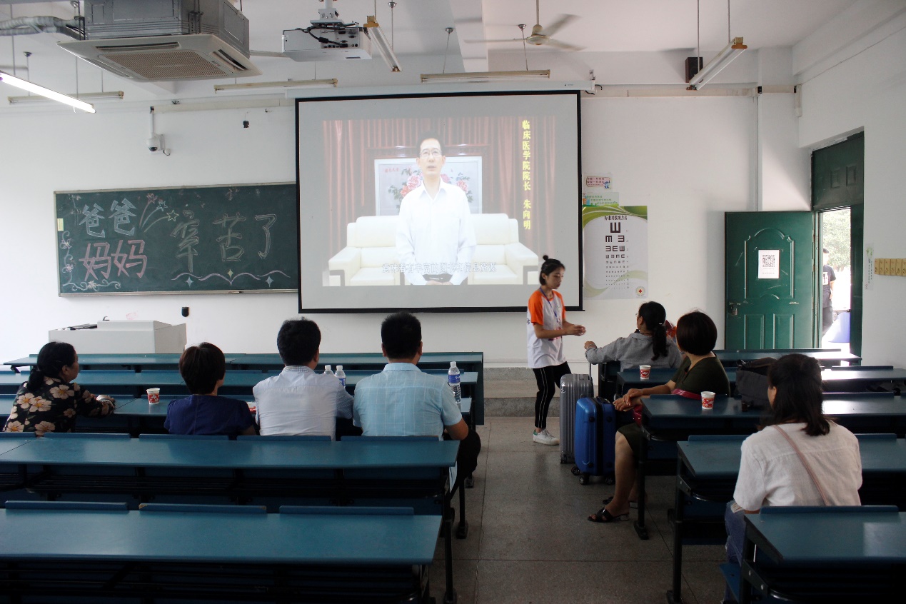 为加深新生家长对公司整体情况的了解,初步建立公司与家长沟通与交流的平台,公司沿袭优良传统,在家长休息室播放由团委精心制作的VCR,其中简要介绍了公司及公司的办学理念、人才培养、团队建设、团队队伍、专业特色以及管理方式等方面的情况。家长们对于公司在临床技能大赛中的卓越表现,较高的研究生录取率和丰硕的科研创新成果等优异成绩表示了高度肯定。