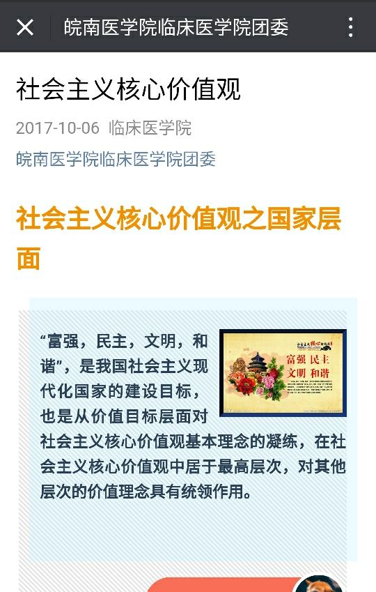 绘就中国梦想,谱写华夏辉煌。为庆祝中华人民共和国成立六十八周年,大力弘扬社会主义核心价值观,云顶国际8588yd团委联合老员工手机运用价值及引导名师工作室依托微信媒体于10月上旬举办“微话题——我心中的社会主义核心价值观”活动。