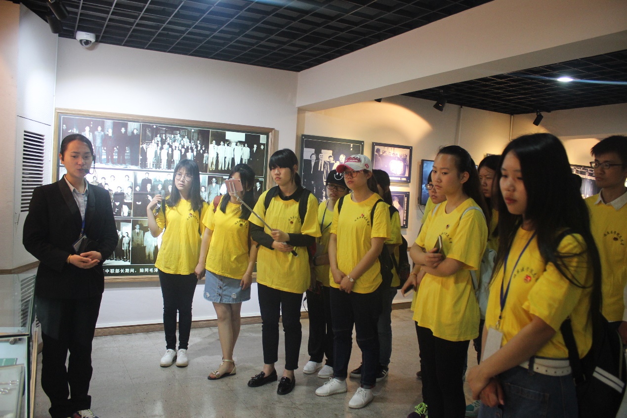 6日上午,40余名共青团员在团委组织带领下身着统一服饰、佩戴团徽乘车至王稼祥纪念园。在王稼祥雕塑前,奏唱国歌、代表发言、重温誓词等环节井然有序进行,在场的每一位同学神情肃然,心中满怀对革命先烈的崇敬。随后在解说员的带领下,同学们有序参观陈列室的五个展厅,看到了王稼祥同志相关照片、书信、生活用品等,为王稼祥传奇的人生故事和坚韧不拔的意志力所深深折服。