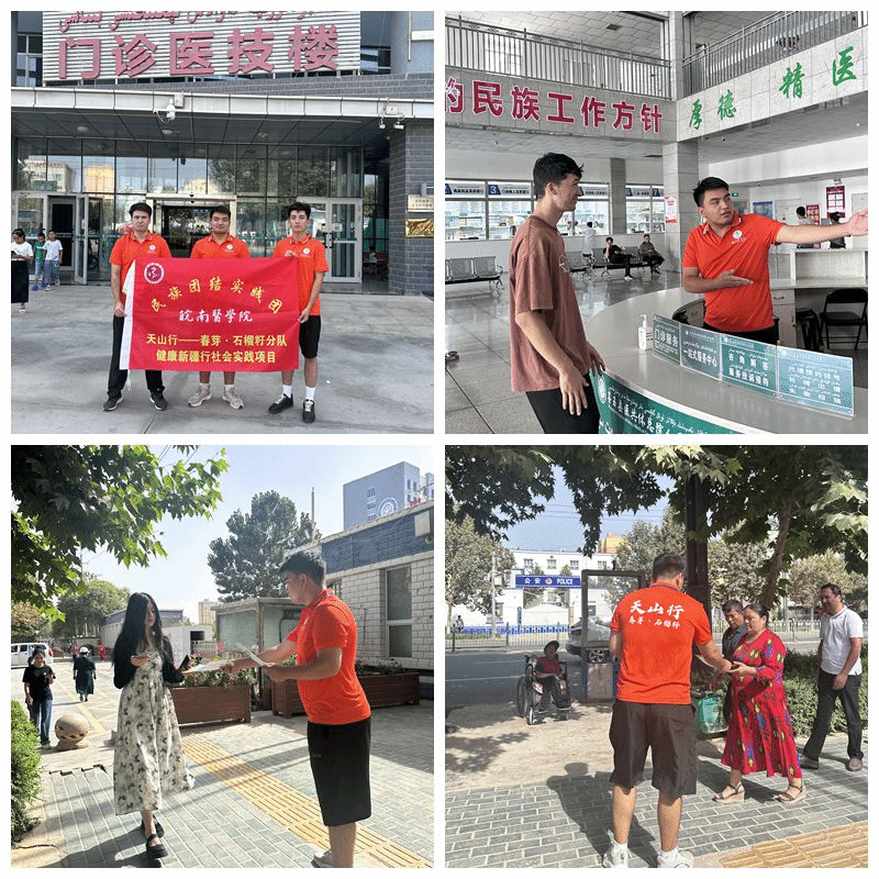 实践团暑期积极投身于基层医疗服务和健康宣传活动,志愿者们走进墨玉县人民医院,开展了为期三周的导诊活动。活动期间,志愿者们热情地为患者提供指引,帮助患者挂号、缴费、就诊,缓解了医院的导诊压力,提高了患者的就医效率。同时,实践团还深入墨玉县其乃巴格社区、盛大广场,开展预防慢性病和健康保健知识宣传活动,向居民们普及常见慢性病的预防方法和健康生活方式。他们用微笑和耐心,为患者和居民带来了温暖和关怀,赢得了患者和当地居民的一致好评。