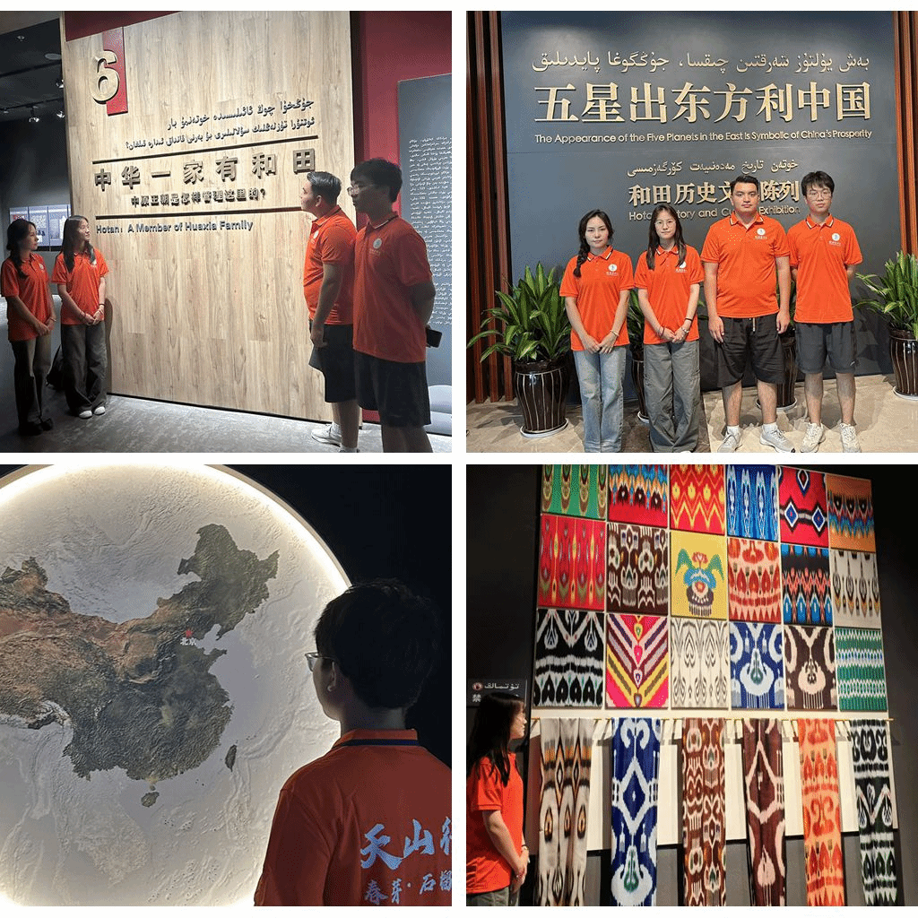 8月12-15日,实践团走进和田玉博物馆、新疆和田玉石交易中心,精美的玉石展品诉说着古老的历史与文化传承。随后,实践团来到墨玉县大巴扎,丰富多样的商品展现出浓郁的地域风情。实践团成员们认真观察、仔细记录,与当地商户和游客交流,深入了解当地的经济发展与文化特色。同学们将把这些宝贵的调研成果转化为推动地区发展的智慧力量。