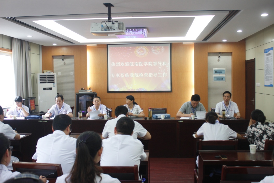 根据教务〔2015〕46号《关于开展2015年实习中期教学检查工作的通知》文件精神,临床医公司党政领导高度重视,周密部署,在临床教学部的支持与协作下,组织一附院内科学、外科学、妇产科学、儿科学等4个教研室的9位临床专家组成了公司实习中期教学检查组,对临床医学专业部分实习(教学)医院开展实习中期教学检查工作。7月21日至8月7日,由公司检查组副组长蒋韶明、刘影同志带队,一附院每周抽调4位热心教学的临床医生组成专家组,公司教学秘书王平和2011级辅导员全程参加,连续3周先后来到安庆市第一人民医院、中国人民解放军海军安庆116医院、南京鼓楼医院集团安庆市石化医院、池州市人民医院、合肥市第一人民医院、中国人民解放军第一〇五医院、六安市人民医院、蚌埠医公司第一附属医院、蚌埠医公司第三附属医院、中国人民解放军第九七医院等10所实习 (教学)医院进行实习中期教学检查工作,得到了各家医院领导和科教科、医务处等部门的大力支持。