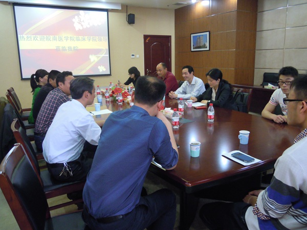 宿舍走访结束后,医院组织召开了交流会。芜湖市第二人民医院副经理桂晓钟、保卫科胡天国科长、科教科全体老师及员工代表参加了会议。会上,桂晓钟首先对各位老师的到来表示热烈欢迎,他表示,云顶国际8588yd的员工在实习、学习中综合素质较高,学习态度端正,受到了医院带教老师和管理人员的一致好评。蒋韶明指出,芜湖二院一直高度重视临床教学,为云顶国际8588yd员工的实习、学习提供了优越条件和环境,代表公司向医院致以真诚的谢意;同时希望员工按照早临床早实践的教学安排,主动接触、研究典型病例。崔晓霞对医院给予员工生活上无微不至的关心和人性化的服务表示感谢,同时寄语同学们:要跟随带教老师学习扎实的专业技能,更要学习其高尚的医德医风,树立崇高的使命感和责任感。陈晓宏处长认为医院在员工宿舍的安全设施配备上比较到位,希望能够在宿舍安装安全门和电子监控,确保员工安全。员工代表表示对在此学习、生活感到满意。但是,同学们也提出了如自习教室紧张等问题,希望院方能够协助解决。