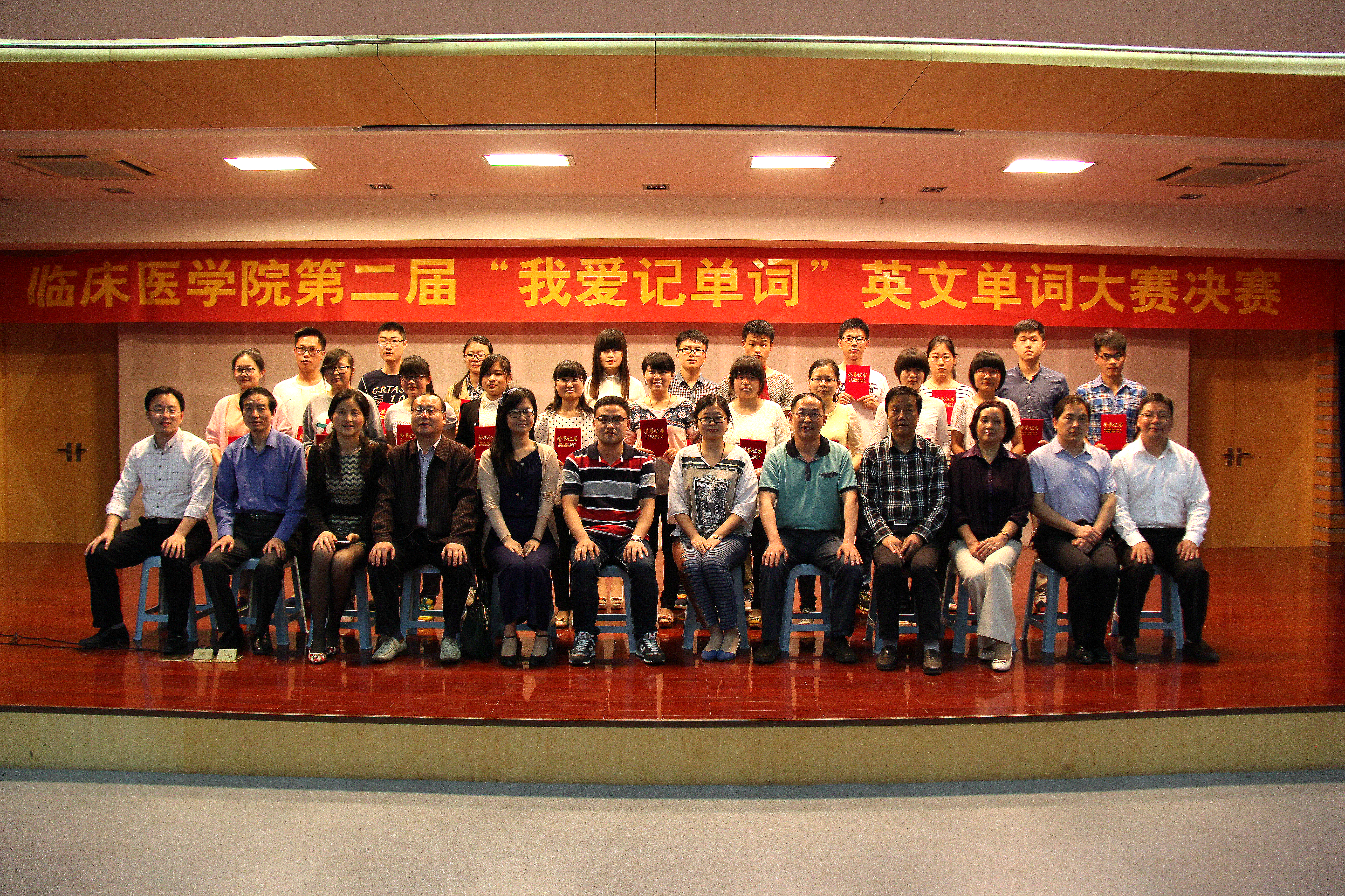 群英荟萃,巅峰决战。为提高员工英语学习兴趣,培养公司学子求实进取精神,进一步深入推进公司学风建设,2015年5月13日晚19:00,云顶国际8588yd第二届“我爱记单词”英文单词大赛决赛在图书馆三楼学术报告厅隆重举办。本次大赛特邀公共基础公司英语教研室老师康勇、姜梦及孙晓安担任评委。各兄弟公司领导、临床医公司党总支书记戴睿、党总支副书记崔晓霞、副处级调研员蒋韶明,以及各年级辅导员莅临现场。大赛采用双语主持,公司近400名员工到场观摩、学习。