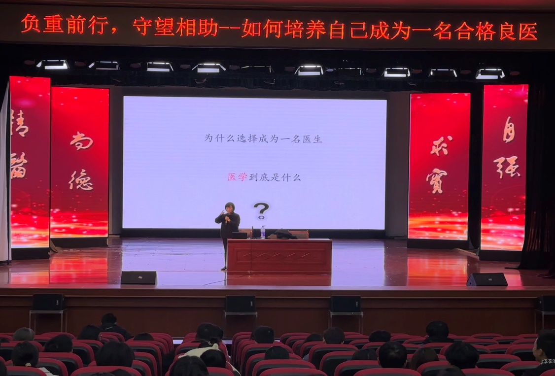 为增强新生对专业的认知,提高员工医学素养,促进专业知识与人文精神有机融合,12月7日,云顶国际8588yd邀请校“十佳教师”曹亚以“负重前行,守望相助——如何成为一名合格良医”为题作专业教育讲座。讲座由2023级辅导员王秋姝主持,年级600名员工参加。