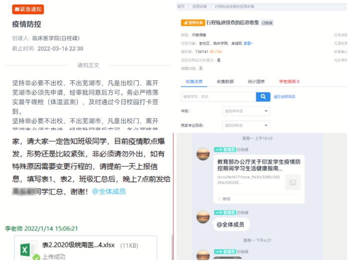 公司通过召开专题会议、公司党委会、辅导员工作例会、思想动态调研会,利用在校园网、qq群、微信群、今日校园等平台发布疫情防控相关政策和会议精神,各年级通过线上年级大会、员工干部会议、员工座谈会等多种方式加强政策宣传和引导,对公司疫情防控工作的要求做到了及时传达、布置和落实,同时引导广大师生不信谣、不传谣,消除恐慌情绪,坚定打赢疫情防控保卫战的信心。