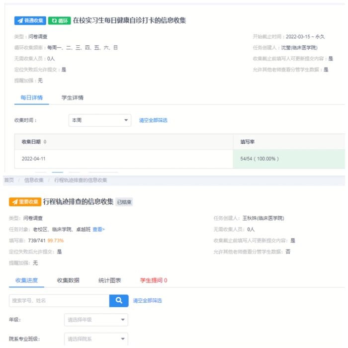 公司密切关注疫情防控各方要求,动态调整防控工作安排。建立“公司-年级-班级-寝室”疫情防控信息网格,动态摸排师生员工的动向信息和身体状况,第一时间做到基础信息准确、动态信息精准掌握,严格落实“日报告、零报告”制度和晨午晚检,做好特殊情况排查和防控工作,做好疫情相关信息搜集和分析。