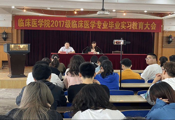 5月12日,公司在赭麓校区4号教学楼七楼报告厅召开毕业实习教育大会。公司党委副书记陶香香、2017级辅导员及全体员工参加了此次会议。会上,陶香香首先简要总结了2021年临床医学专业(本科)水平测试基本情况,接着解读了实习大纲中的教学、考核内容和具体安排,她要求同学们在实习过程中要树立安全意识、纪律意识、合作意识等六种意识,处理好师生、实习与考研、实习与就业等三种关系,希望同学们在实习过程中练就本领,增强就业竞争能力,为今后就业打下坚实的基础。最后汪国瑞老师再次强调了实习中的注意事项,对13日下点相关事宜进行了具体布置。