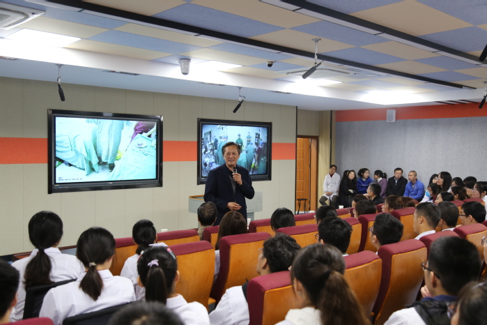 手术结束后,章尧与一附院手术室的专家们进行现场连线通话,对临床教学团队为本次教学活动顺利开展,并取得很好效果所作出的努力表示赞赏;他充分肯定了云顶国际8588yd与一附院对早临床教学模式的积极探索;指出通过手术远程交互的直播教学,可以解决手术室空间有限、观摩人数受限等问题,让员工与临床真正做到零距离。章尧书记还和观摩现场员工进行了交流,他希望同学们能珍惜公司信息化教学建设成果,扎实做好理论知识与实践技能的学习,为今后走上临床工作岗位打下坚实基础,努力成为国家卫生事业的建设者,人民身心健康的守护人。