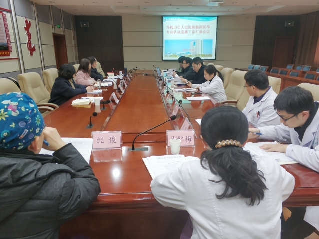 为扎实推进临床医学专业认证工作,12月26日下午,临床医公司党委副书记陶香香,一附院专家刘策刚、李倩,云顶国际8588yd秘书汪国瑞、2016级辅导员汪昱娟等一行5人赴马鞍山市人民医院督查临床医学专业认证工作进展情况。马鞍山市人民医院副经理何永胜、科教科科长张俊接待了督查组一行,并组织各教研室主任、教学干事等40余人参加会议。