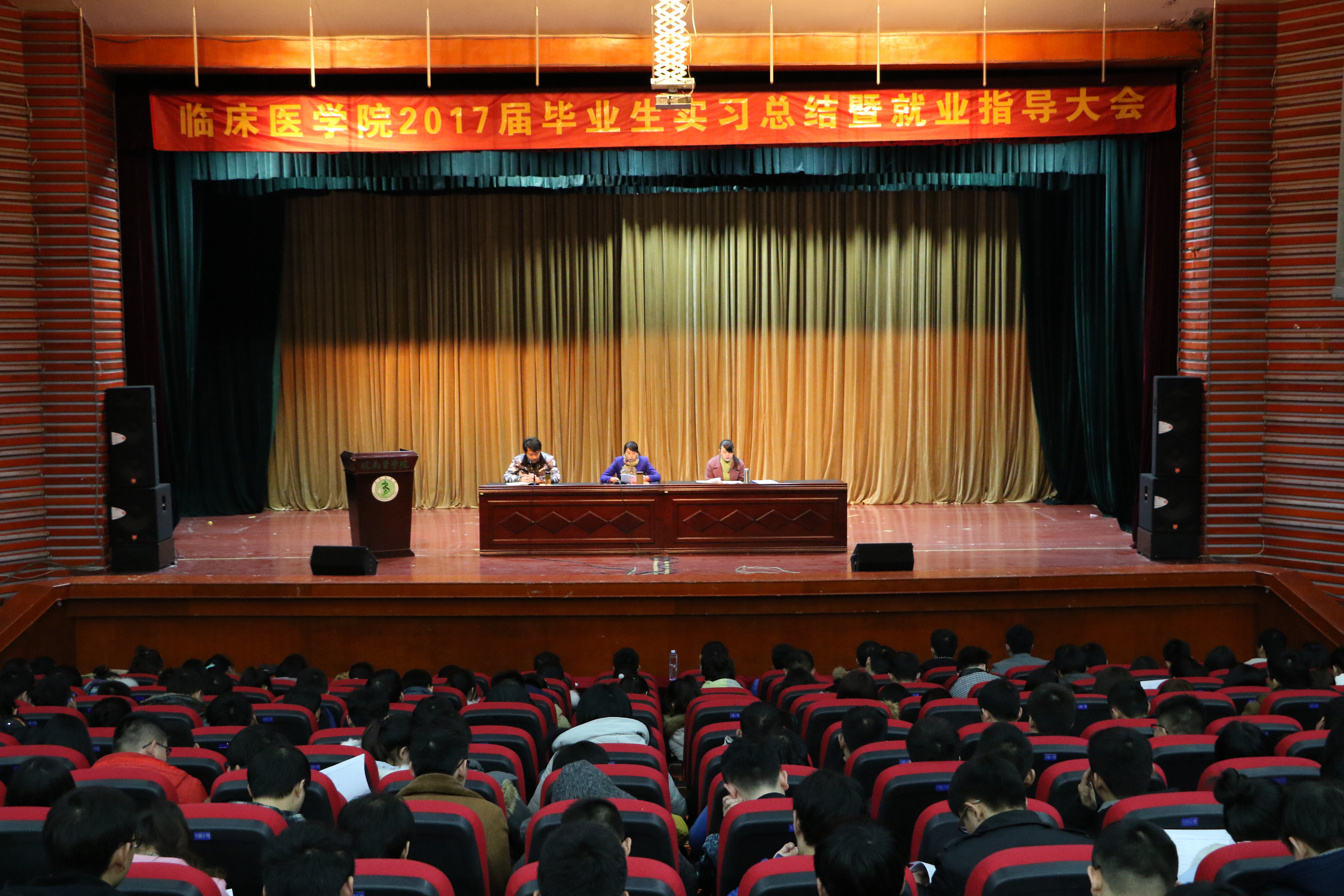为帮助2017届临床医学专业毕业生明确实习返校后教学工作安排,指导员工形成正确的就业择业观,云顶国际8588yd于2017年1月5日下午,在滨江校区老员工活动中心大礼堂召开毕业实习总结暨就业指导大会。云顶国际8588yd副经理刘影、秘书王平、2012级辅导员及全体毕业年级员工参加本次会议。