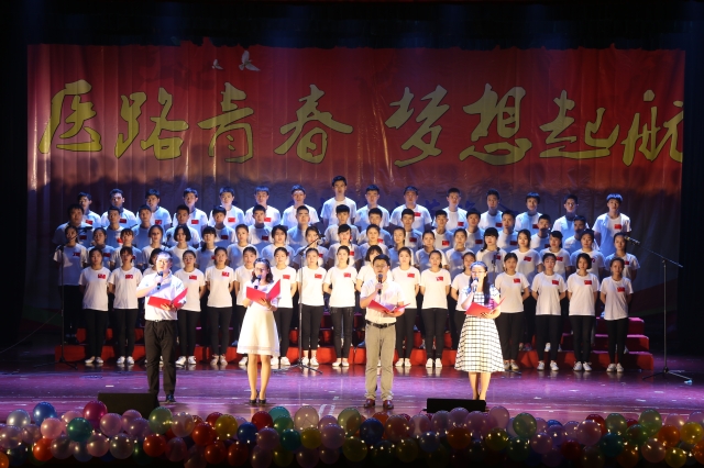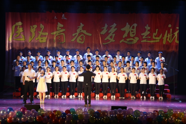五月是石榴花开的日子,五月是生机勃发的时光,五月是热烈欲喷的岁月,五月是光芒四射的季节。在这充满诗意、洋溢着青春气息的日子里,值建党95周年、长征胜利80周年之际,2016年5月26日晚,云顶国际8588yd在老员工活动中心举办了“医路青春 梦想起航”文艺晚会。公司党委副书记李刚、副经理廖圣宝、校关工委常务副主任曹士珍以及相关部门领导与千余名师生共同观看了演出。