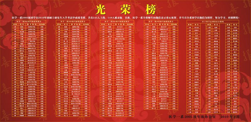 医学一系制作光荣榜公布考取员工名单,激励广老员工勤奋学习