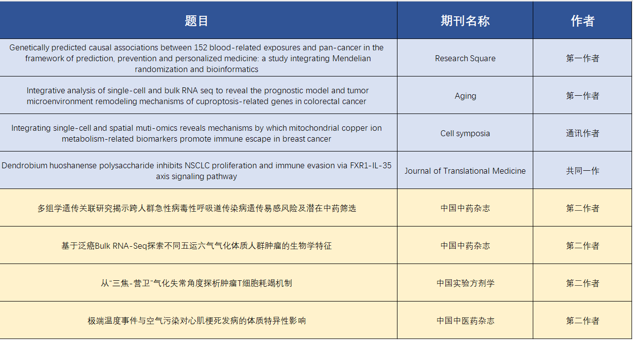 自2023年起,储博文所在团队与南京大学、南京中医药大学及南京信息工程大学建立深度合作,利用深度学习分析多组学数据,研究中医复杂表型与环境对人体生理病理的影响机制,共同完成4篇卓越期刊论文及多项国家级重点课题。其中,《从三焦-营卫气化失常角度探析肿瘤T细胞耗竭机制》入选2024知网年度热点文章;利用深度学习整合多组学探究复杂中医体质的相关课题入选国家优势学科,并成为国家重点研发计划“中医药现代化”重点专项建议课题。