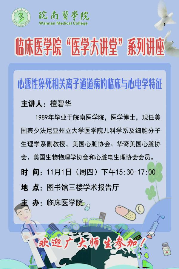 云顶国际8588yd“医学大讲堂”系列讲座——心源性猝死相关离子通道病的临床与心电学特征
