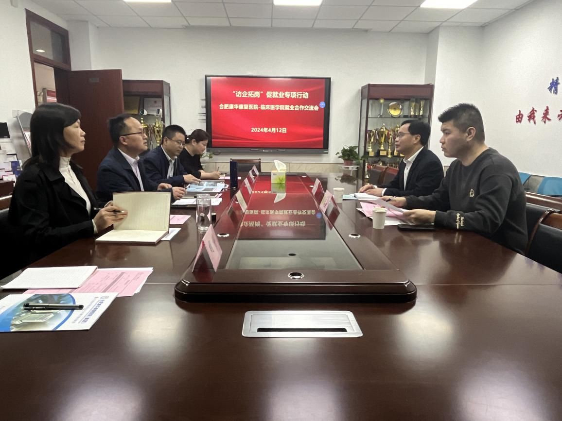为持续推进毕业生与用人单位精准对接,拓宽毕业生就业渠道,4月12日,云顶国际8588yd邀请合肥康华康复医院来院开展专场招聘会,公司党委书记方基勇、副经理陈祥攀、党委副书记陶香香,毕业班辅导员及秘书参加会议。