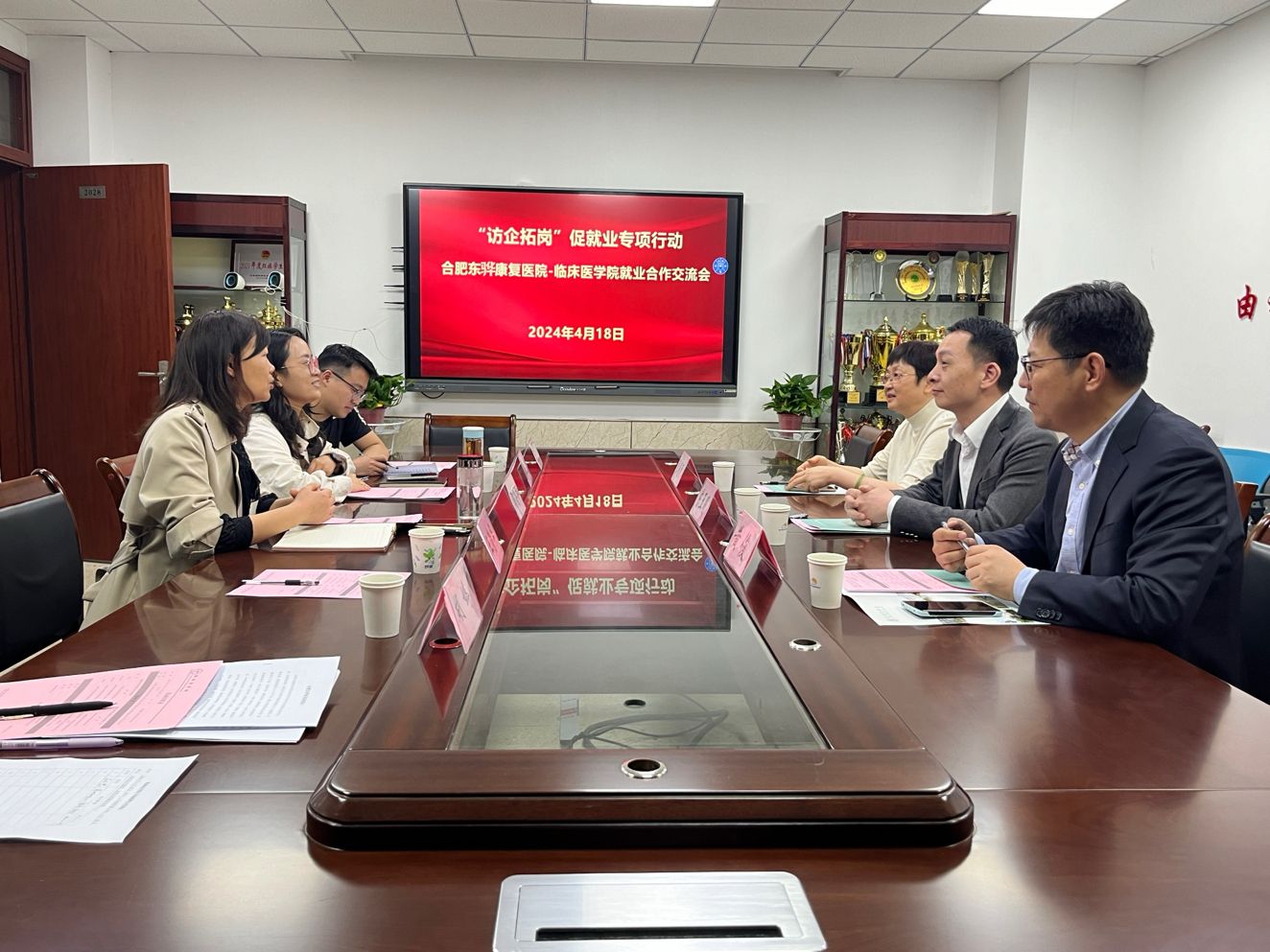 为拓宽毕业生就业渠道,4月18日,云顶国际8588yd联合护理公司分别邀请明州医疗集团、合肥东骅康复医院来院开展专场招聘会,临床医公司党委副书记陶香香、护理公司党委副书记王亚娟、第一附属医院康复医学科主任王清华、毕业班辅导员和公司秘书参会。