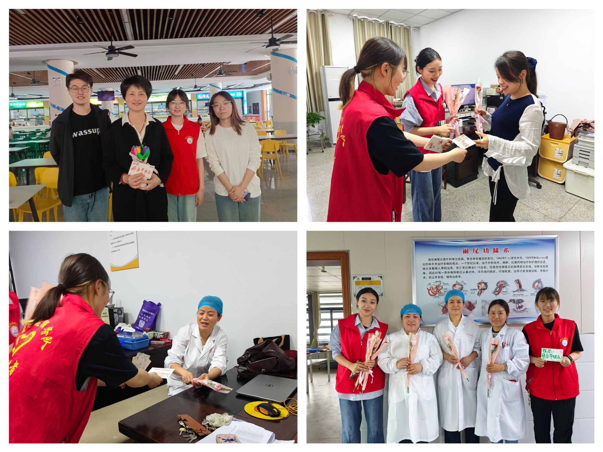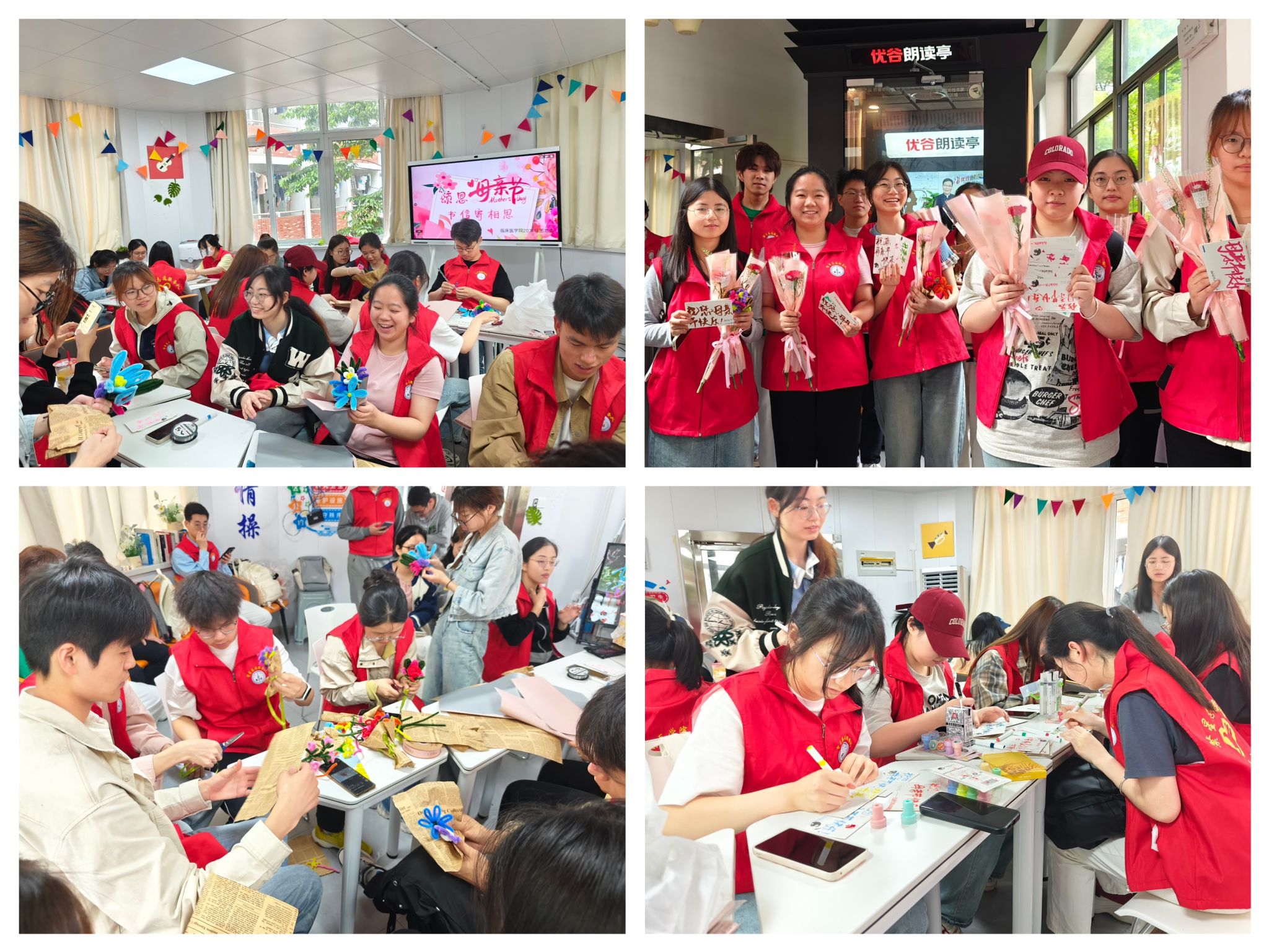 5月11日至12日,云顶国际8588yd繁星志愿服务队的志愿者们在“一站式”员工社区包扎花束、制作精美贺卡,开展“花香祝福,献爱母亲”主题活动。志愿者们来到滨江校区办公楼、宿舍楼、食堂等处,向节日里仍坚守岗位、默默付出的“母亲们”传递最真挚的感谢,送上最温暖的祝福。