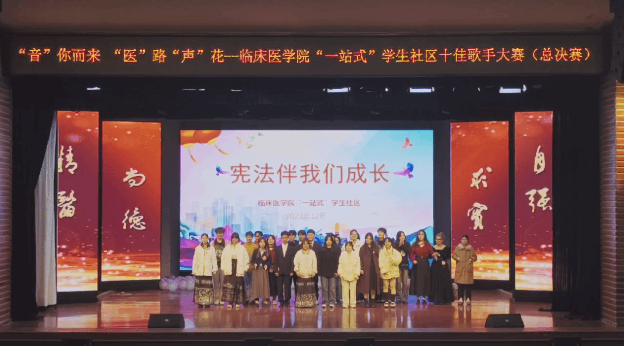 比赛以操依旋团队演唱的《万疆》拉开帷幕,悠扬的歌声让在场的观众感受了祖国大好河山的辽阔壮美;盛雨竹团队演唱的《烟雨行舟》细腻婉转,吴侬软语的歌声带领观众走进了烟雨江南;刘雅轩献唱的《明月几时有》,将博大精深的诗词文化与流行音乐结合,用同学们喜闻乐见的方式宣扬中华优秀传统文化,使同学们更加坚定文化自信;卢欣怡同学的一曲《我和我的祖国》将整场晚会推向高潮,现场观众一齐放声合唱,抒发了新时代青年对祖国的热爱和赞颂;《大鱼》《那些年》《我怀念的》和《心墙》等脍炙人口的青春歌曲,引起现场观众的广泛共鸣;李玮祺团队合唱《如愿》抒发了同学们对革命先烈们的敬仰,也表达了自己在中华民族伟大复兴的征程中建功立业的决心。最后,活动在全体参赛选手演唱的《宪法伴我们成长》歌声中落下帷幕。