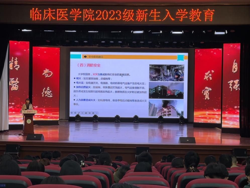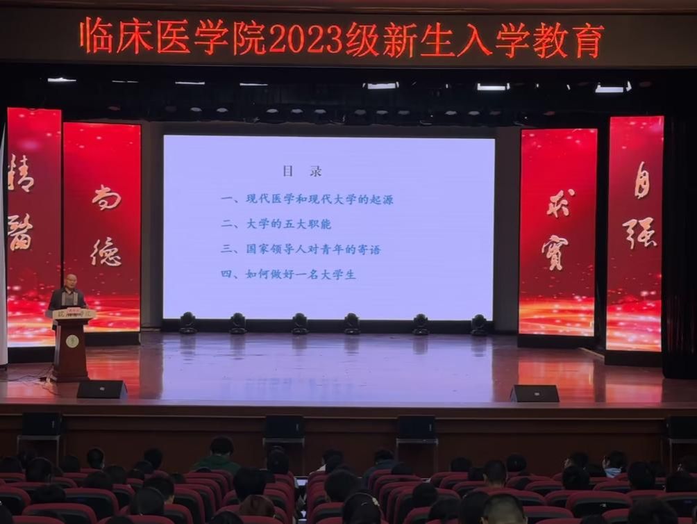 傅万山以“立足新起点 砥砺新征程”为题,重点向同学们介绍了现代医学和现代大学的起源、大学的五大职能、如何做好一名老员工,教育引导新生厚植爱国主义情怀,增强对中国共产党的领导和中国特色社会主义的思想认同、情感认同、价值认同,并引导全体同学尽快适应老员工活。他对同学们提出五点希望:一是养成良好习惯,学会自律自控;二是锤炼意志品质,塑造个性特质;三是学习掌握知识,不断提升自我;四是做好知行合一,注重实践锻炼;五是树牢法律意识,学会保护自己。