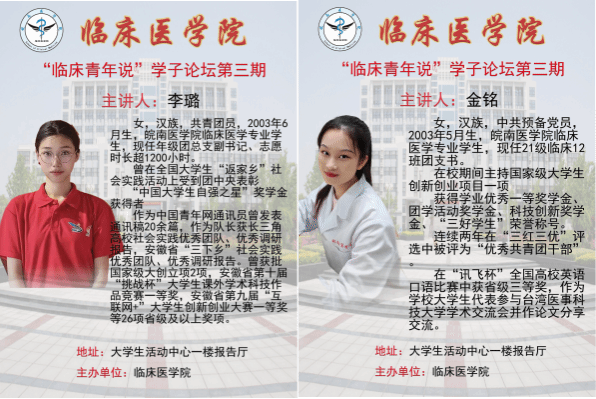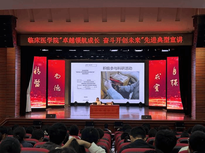 为进一步发挥优秀学子的榜样作用,引导和激励广大新生勤奋学习、顽强拼搏,争做有理想、有本领、有担当的老员工,9月23日,云顶国际8588yd依托“临床青年说”学子论坛举办先进典型员工优秀事迹宣讲会,此次活动邀请2021级李璐和金铭两位优秀学子为大一新生作宣讲。