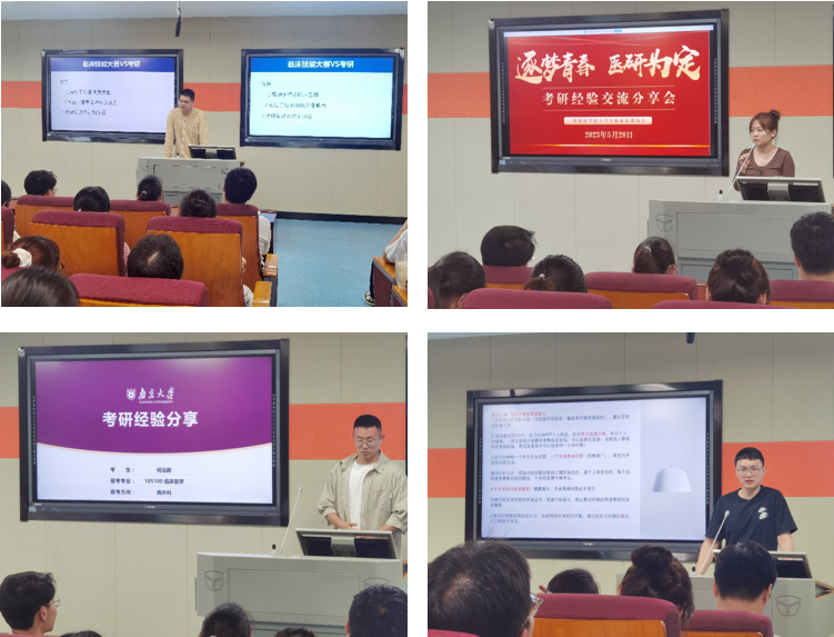 邹心悦、何远鹏从基础试验研究设计、科学实验理念等方面向大家着重为大家分享了科研方面经历与启示。胡馨、许金亮则从安徽医学联合卓越班经历入手,和同学们交流了考研备考、择校等相关问题。