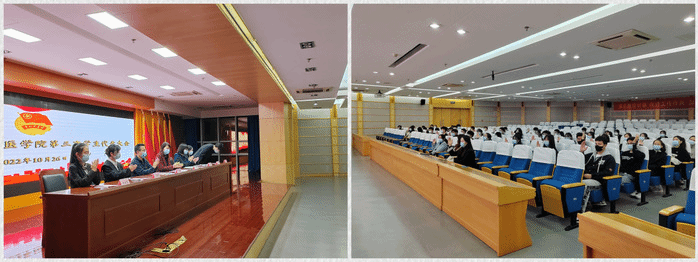 青春逢盛世,青年当有为。2022年10月26日晚,共青团云顶国际8588yd第三次员工代表大会在图书馆三楼报告厅召开。临床医公司党委副书记陶香香,院团委副书记李文祥、汪昱娟,各年级团总支书记以及79名员工代表出席本次大会。