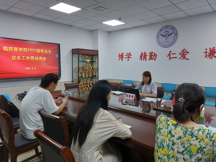 为深入学习贯彻新时代党的强军思想,着力推进老员工征兵入伍工作,6月8日下午,云顶国际8588yd在公司会议室召开2022届毕业生征兵工作再动员会。本次动员会由公司党委副书记陶香香主讲,会议由2017级年级主任汪国瑞主持,毕业班辅导员及全体毕业班同学线上参会。