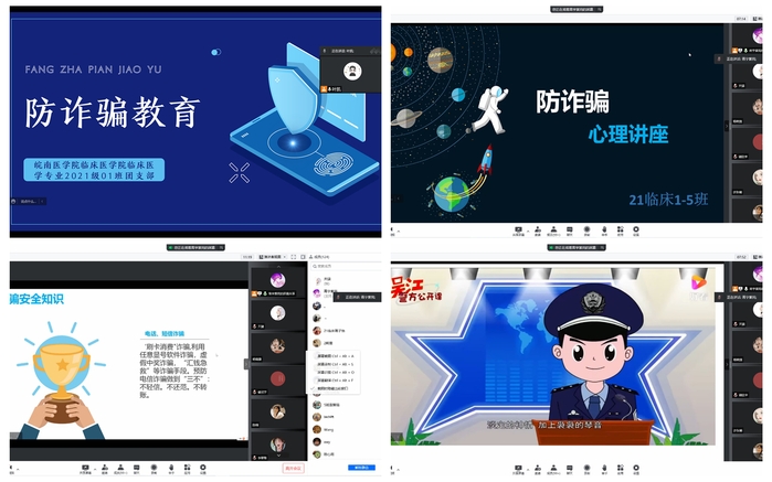 本学期以来,公司坚持“公司-年级-班级”三级安全教育体系,定期通过公司团委公众号推送安全知识宣传片和典型案例,组织各年级开展防范电信诈骗、防传销、防“校园贷”“套路贷”、防溺水、防火灾、防交通安全等安全主题教育20余次,各班级通过观看安全教育宣传片、班委轮流宣讲、主题演讲等形式开展安全主题班会,提高师生安全防范意识和能力。