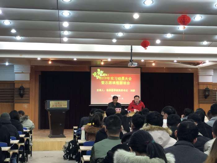 11月27日晚,公司在赭麓校区4号教学楼七楼报告厅组织召开2019年实习动员大会暨志愿填报解读会。公司党委书记刘群、秘书汪国瑞、2016级辅导员以及全体员工参加了本次会议。刘群从“什么是实习”、“为什么要实习”、“影响实习的几个现状”、“目前公司实习医院总体情况”等方面进行介绍,最后他希望同学们能服从整体安排,平常心对待、合理分析、冷静思考,把实习作为一次人生历练。随后2016级辅导员张海涛老师则针对志愿填报的具体事宜进行了讲解。