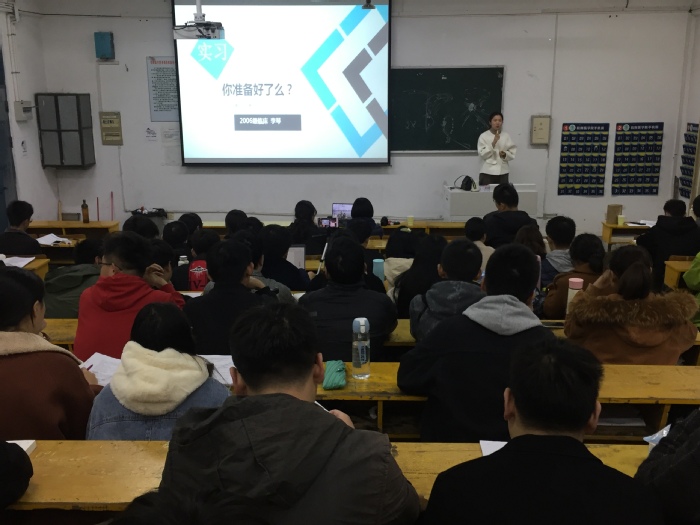 为帮助员工了解实习期间生活、学习状况,尽快适应实习生活,公司于11月25日晚在赭麓校区4号教学楼4201室邀请云顶国际8588yd第一附属医院麻醉科曹亚老师和甲乳外科李琴老师,举办“临床医学专业员工实习专题讲座”。李琴首先向同学们阐述了实习中“感性与理性,理论与实践”的含义,接着围绕“实习,你准备好了吗”这个主题,对实习的必要性以及如何应对身份的转变做详细讲解。曹亚从“未来已来,将至已至”的现实话题谈起,结合自身经历围绕“如何努力成为合格的未来医生”这一主题进行了生动地阐述,鼓励同学们学会接受并且热爱医生行业,努力做有文化的医者。