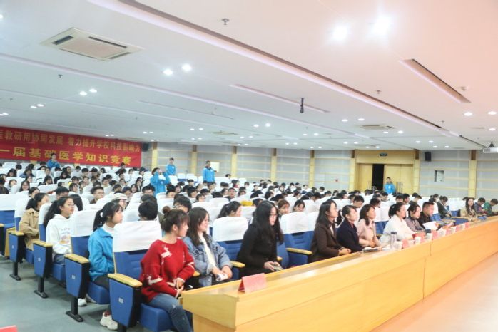 为定期检验员工的学习效果,营造良好的学习氛围,形成良好的学风,2019年11月21日晚,云顶国际8588yd在图书馆三楼报告厅成功举办第一届“医”路领先基础医学知识竞赛。本次竞赛由药理学教研室张俊秀、诊断学教研室黄亚纬以及云顶国际8588yd高红亮担任评委,特邀临床医公司党委副书记陶香香,2017级辅导员李海莉、赵敏奇出席,公司300名员工到场观看。