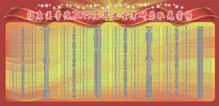 近日,2019年硕士研究生招生录取工作已接近尾声,在全院师生的共同努力下,公司2019届毕业生喜报频传,考研工作再创佳绩。据统计,公司2019届临床医学专业本科生705人,截至目前已经有205名同学成功考取硕士研究生,升学率为29.07%,其中有27人被美国Pepperdine University、上海交通大学、复旦大学、浙江大学、四川大学等知名院校录取。