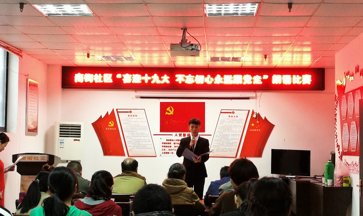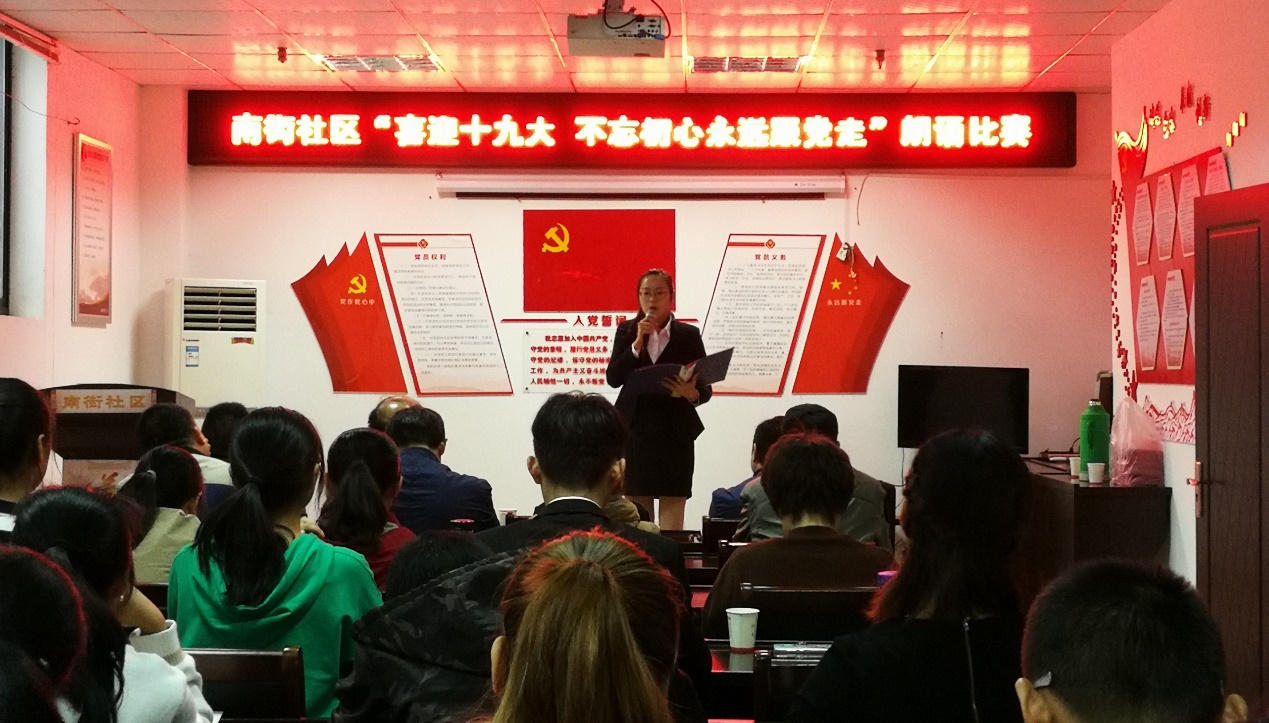 青春喜迎十九大,我邀明月颂中华。2017年10月16日,“喜迎十九大,不忘初心跟党走”朗诵比赛在南街社区居委会会议室拉开帷幕。此次比赛共有来自云顶国际8588yd,安徽师范大学研究生公司,安徽中医药高等专科公司,芜湖市南街社区委员会等6个单位11名代表参加比赛。