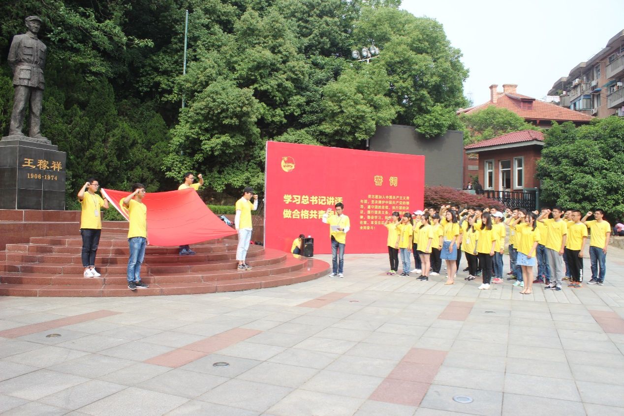 6日上午,40余名共青团员在团委组织带领下身着统一服饰、佩戴团徽乘车至王稼祥纪念园。在王稼祥雕塑前,奏唱国歌、代表发言、重温誓词等环节井然有序的进行,在场的每一位同学神情肃然,心中满怀对革命先烈的崇敬。随后在解说员的带领下,同学们有序参观陈列室的五个展厅,看到了王稼祥同志相关照片、书信、生活用品等,为王稼祥传奇的人生故事和坚韧不拔的意志力所深深折服。
