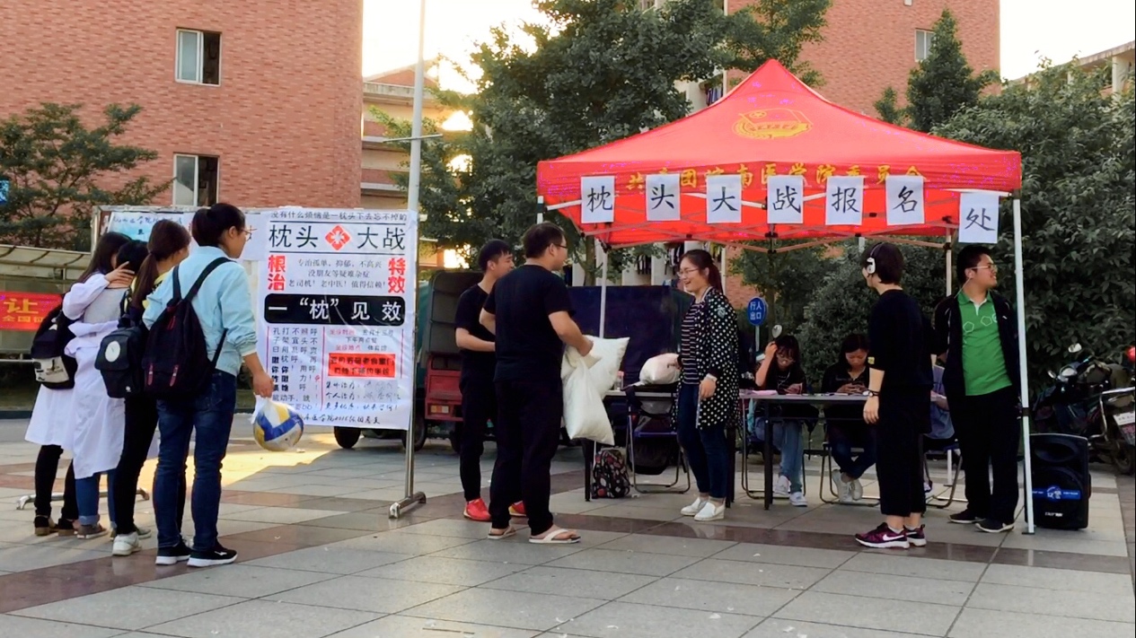 5月9日中午,云顶国际8588yd2015级员工会成员在老食堂门口组织进行了“枕头大战”线下报名活动,同时运用年级新媒体平台优势,线上QQ,微信,微博,多维度展开宣传,拉开了“枕头大战”活动的序幕。当天,报名现场气氛活跃,来自14个专业的200余位同学报名参加活动,活动参与面覆盖到公司的各个公司、年级。