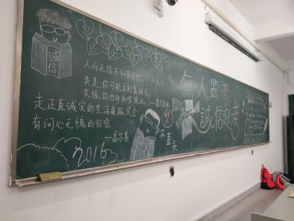 在公司和年级的倡议下,经班级主动申请,12月9日晚7:00-8:00,云顶国际8588yd2015级11班、12班在1403教室进行了《马克思主义基本原理概论》无人监考考试。考试开始前,辅导员汪楠楠宣读《云顶国际8588yd考场规则(修订)》,叮嘱考生遵守考场秩序,并预祝同学们取得好成绩。考试过程中,考场秩序井然,考生答题专注,态度端正,无人作弊。考试结束后,随着考生有序地交卷离场,本次无人监考考试圆满结束,同学们顺利接受了对知识和人格的双重考核。