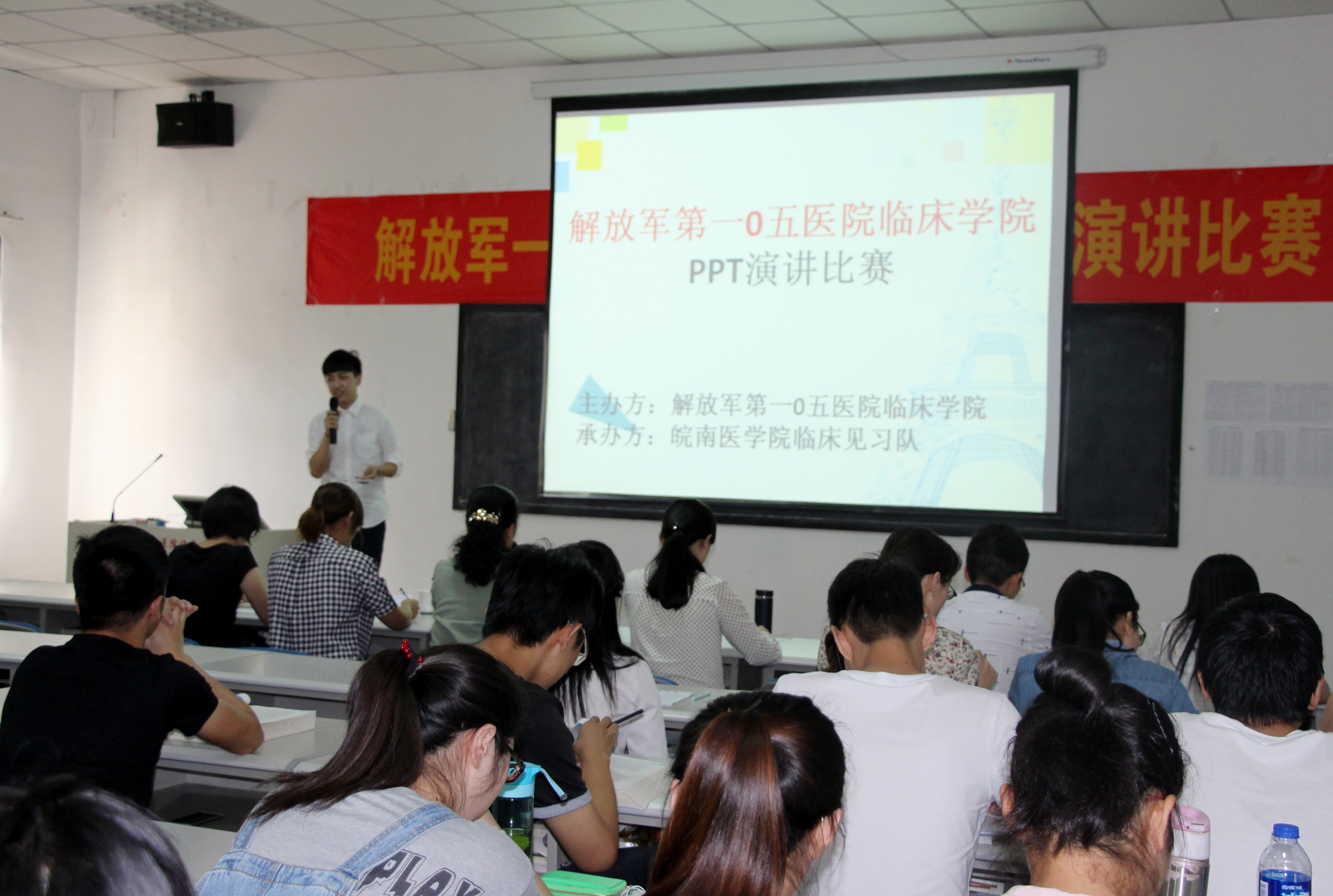 2016年6月12日下午,解放军一0五医院临床公司在皖医教室成功举办了以“医者仁心”为主题的PPT演讲比赛。公司马嘉主任受邀参加此次比赛,临床、护理、医技专业员工积极参加比赛。此次活动由解放军一0五医院临床公司主办,云顶国际8588yd临床见习班(2013级临床医学14班)承办。比赛由皖医见习班花向阳和蚌医见习班孙莹莹主持。