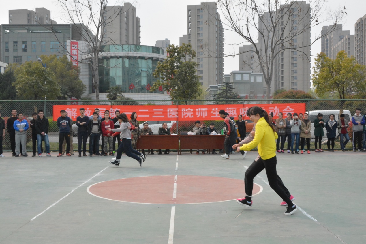 为丰富实习生活,增进同学友谊,促进师生交流,3月25日,云顶国际8588yd解放军第一二三医院实习点举办了一场别开生面的“师生趣味运动会”。解放军第一二三医院副经理王振德、黄峻松等人莅临比赛现场,云顶国际8588yd实习队,蚌埠医公司实习队,以及教学老师代表队参加了本次活动。