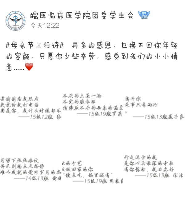 蒙蒙细雨恩,滴滴慈母情。“母亲节三行诗”征集活动取得了良好反响,不仅为同学们提供了一个抒发内心情感、展示自我才华的平台,更是对中华民族传统美德孝文化的传承与发扬。