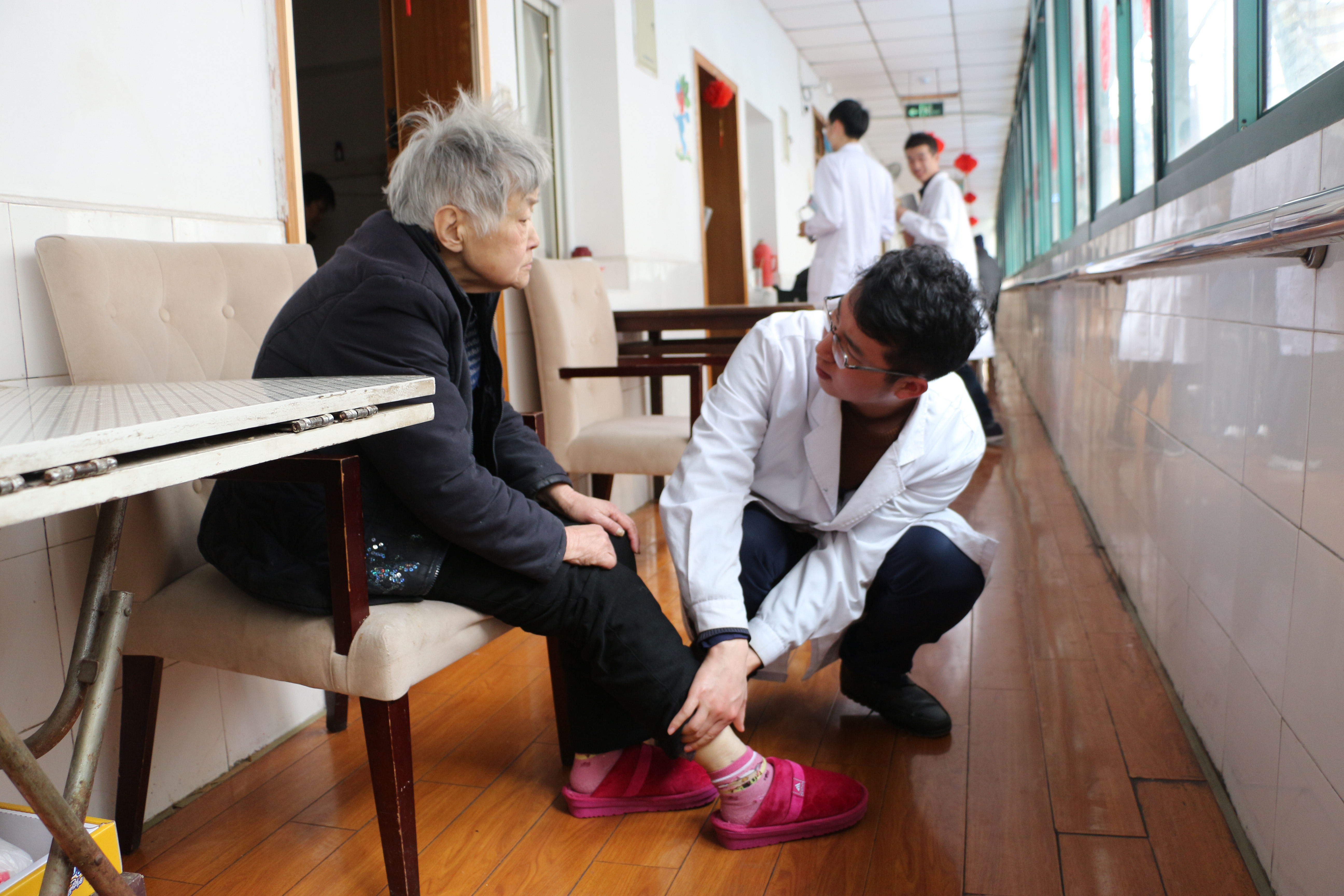 “最美不过夕阳红”。3月4日,南京军区总医院实习队在科教科老师的帮助下,走进南京市梅园街道老年照料中心,为百余名老人检查身体、测量血压、宣传保健养身知识。活动中,志愿者们给爷爷捶捶背,陪奶奶聊聊天,留下了一串串欢声笑语,在乍暖还寒的春天为老人们送去了一份贴心的关怀。