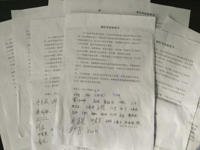 年级辅导员就考风考纪相关内容,积极组织各班同学再学习《云顶国际8588yd考场规则(修订)》、《云顶国际8588yd关于考试违纪及考试作弊行为的认定原则(修订)》及《云顶国际8588yd员工违纪处分管理暂行办法(试行)》中相关内容,作出针对性教育。同时,也将诚信教育落到实处,组织员工签订《诚信考试承诺书》。每位员工都郑重地在诚信考试承诺书下写下自己的名字,做出诚信考试、拒绝违纪的决心。